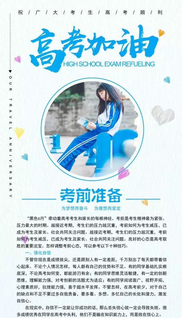 行:趕考過(guò)程中,要盡量選擇空調(diào)車(chē),途中要備好防暑藥品和降溫飲料,要預(yù)計(jì)好時(shí)間,提前20到30分鐘到考場(chǎng)為宜。