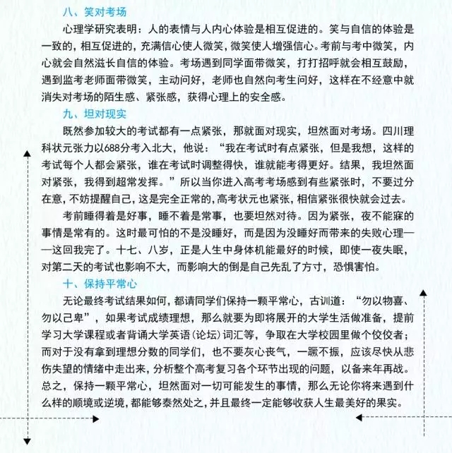 有些細(xì)節(jié),例如通訊工具不能帶進(jìn)考場(chǎng)、不能提前答題、書(shū)寫(xiě)要規(guī)范等等,平時(shí)很少受到同學(xué)的關(guān)注,因?yàn)檫@些小細(xì)節(jié)大多不會(huì)影響到同學(xué)們平常的模擬考試成績(jī),老師也很少提醒。但是,放到正式的高考考場(chǎng)上,這些細(xì)節(jié)可就是影響你高考成敗的關(guān)鍵了。